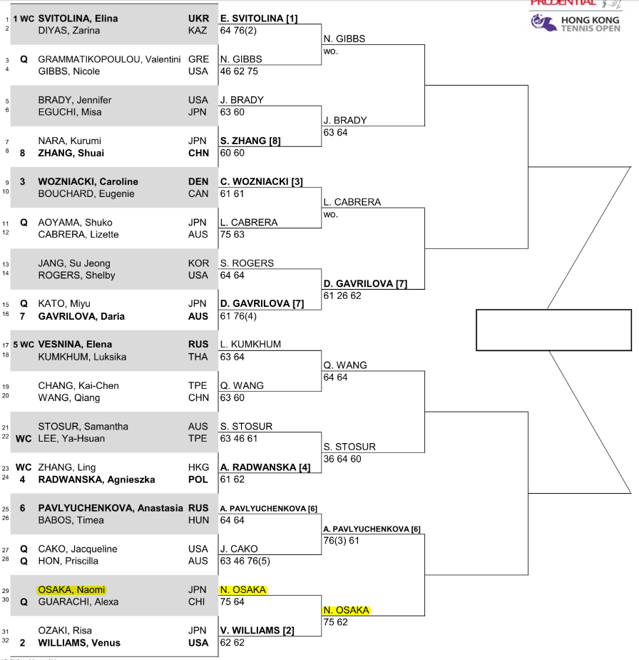 【大坂なおみ】香港オープン・テニス 2017の準々決勝の試合予定(開始時刻)や放送テレビ局やドロー(トーナメント表)など最新情報を掲載